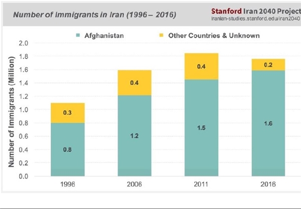 نمودار تغییرات جمعیت مهاجران خارجی مقیم در ایران
