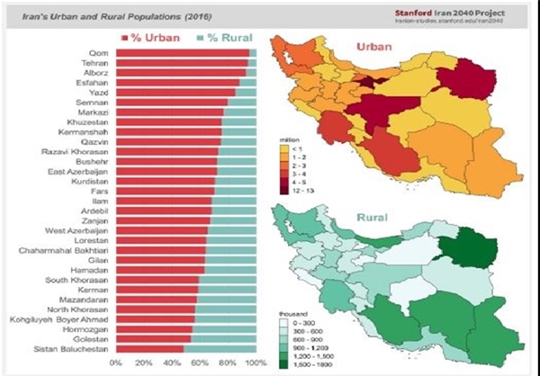 نقشه پراکندگی جمعیت شهری و روستایی به تفکیک استان ها