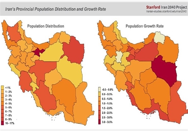 سمت راست؛ نقشه نرخ رشد جمعیت در استانها