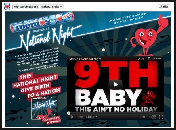 بعلاوه، دولت سنگاپور در اقدام دیگری در سال ۲۰۱۲ با راه‎اندازی کمپینی به نام «شب ملی» به ترغیب احساسات وطن‎دوستانه مردم برای افزایش جمعیت کشورشان در شب ملی این کشور (۶ آگوست) پرداخت. این کمپین که با همکاری یک نهاد غیردولتی راه‎اندازی شد از گیاه «نعناع» به عنوان یک نماد استفاده می‎کند. در همین راستا کلیپی با اجرای یک خواننده رپ تهیه شد که با شعارهای وطن دوستانه، از همسران می‎خواهد بجای تکان دادن نمادین پرچم سنگاپور در شب ملی این کشور، نعناع بخورند، دهان خود را خوشبو کنند و برای آینده سنگاپور فرزند متولد کنند.