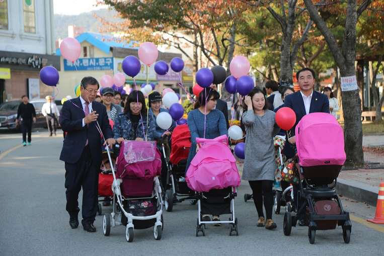 گردهمایی ۳۰۰ مادر در پارک شهر هاینام کره جنوبی به مناسبت افزایش نرخ باروری در این شهر به ۲.۴ فرزند